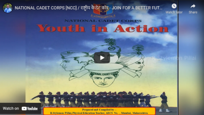 An Educational Presentation on NCC was prepared to motivate students to join NCC.The National Cadet Corps, the youth wing of Armed Forces with its Headquarters at New Delhi strives to be and is one of the greatest cohesive forces of the nation, bringing together the youth hailing from different parts of the country and moulding them into united, secular and disciplined citizens of the nation. National Cadet Corps is a Tri-Services Organization, comprising the Army, Navy and Air Wing, engaged in grooming the youth of the country into disciplined and patriotic citizens. NCC is the largest uniformed youth organization.
